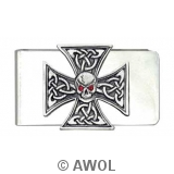 "Celtic Iron Cross Skull" Pewter Charm Silver Tone Money Clip