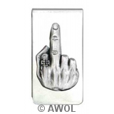 "Middle Finger" Pewter Charm Silver Tone Money Clip