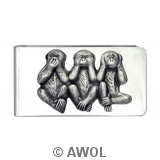 "Three Wise Monkeys" Pewter Charm Silver Tone Money Clip