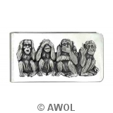 "Four Monkeys" (Hear no evil, See no evil, Speak no evil, Up to evil) Pewter Charm Silver Tone Money Clip