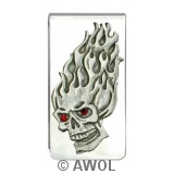 "Flaming Skull" Pewter Charm Silver Tone Money Clip