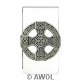 "Celtic Cross Shield" Pewter Charm Silver Tone Money Clip