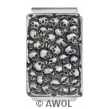 "Skull Heads" Pewter Panel Silver Tone Money Clip