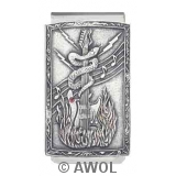 "Flaming Snake Guitar" Pewter Panel Silver Tone Money Clip