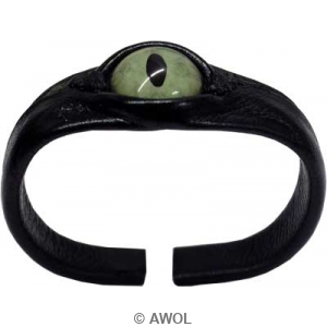This one of a kind Green Cat eye bracelet is hand crafted with black genuine leather stretched over metal with open-band design. It features with a high quality green cat glass eye, which makes this bracelet a must-have collection for Halloween or parties.