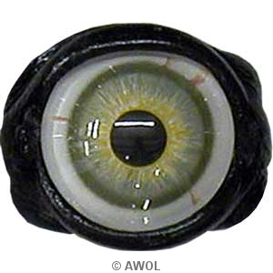 This one of a kind Green eye ring is hand crafted with black genuine leather stretched over metal with open band design. It features with a high quality green real human glass eye, which make this ring a must-have collection for Halloween or parties.