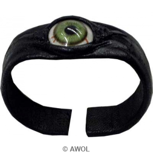 This one of a kind lime green eye bracelet is hand crafted with black genuine leather stretched over metal with open-band design. It features with a high quality lime green real human glass eye, which makes this bracelet a must-have collection for Halloween or parties.
