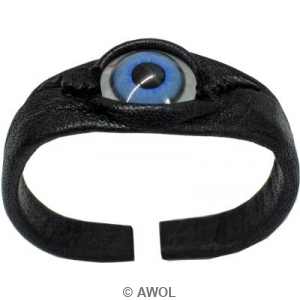 This one of a kind sky blue eye bracelet is hand crafted with black genuine leather stretched over metal with open-band design. It features with a high quality sky blue real human glass eye, which makes this bracelet a must-have collection for Halloween or parties.