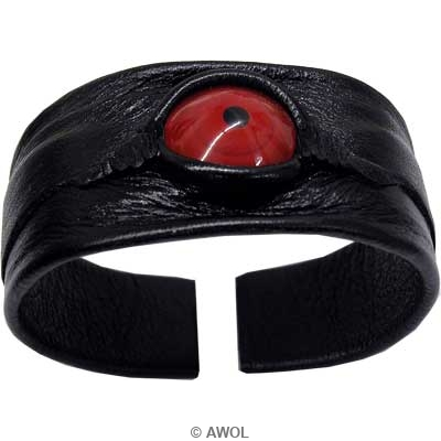 Black Leather Vampire Red Eye Bracelet - Made in USA